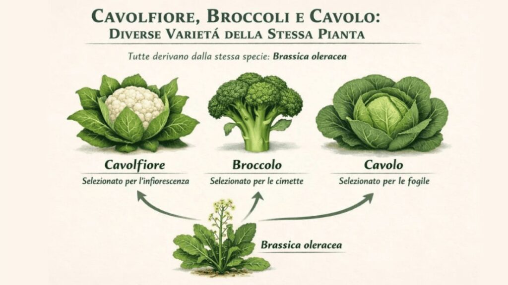 Quando portiamo in tavola cavolfiore, broccoli o cavolo, pensiamo a ortaggi completamente diversi tra loro. Cambiano la forma, il colore, il sapore e perfino il modo in cui li cuciniamo. Eppure, dietro questa varietà sorprendente, si nasconde una verità affascinante: tutti derivano dalla stessa specie botanica.